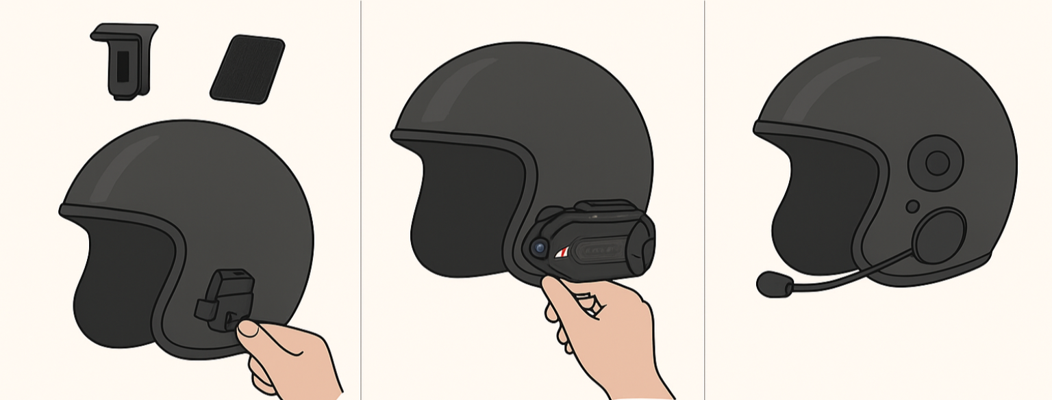 Muy fácil. Solo debes colocar los soportes incluidos en el casco, fijar el intercom y conectar el micrófono + altavoces. La instalación promedio toma menos de 10 minutos.